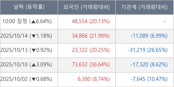[표] 외국인ㆍ기관 순매매량 (단위 주)