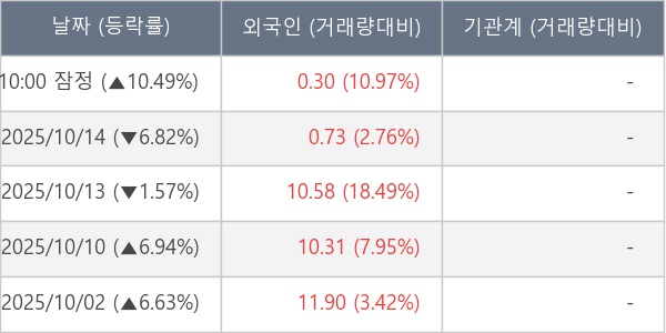 [표] 외국인ㆍ기관 순매매량 (단위 만주)