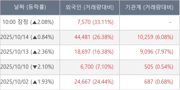 [표] 외국인ㆍ기관 순매매량 (단위 주)