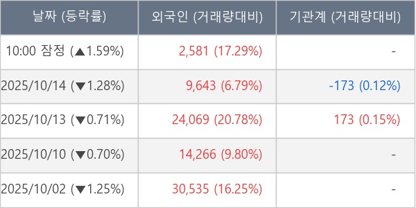 [표] 외국인ㆍ기관 순매매량 (단위 주)