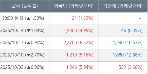 [표] 외국인ㆍ기관 순매매량 (단위 주)
