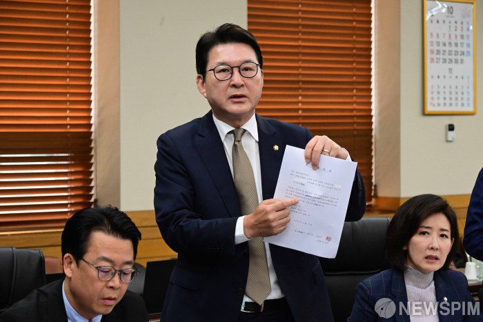 [서울=뉴스핌] 국회사진기자단 = 신동욱 국민의힘 의원이 15일 오전 서울 서초구 대법원에서 열린 전체회의에서 '이재명 대통령의 공직선거법위반 사건에 대한 대법원 전원합의체 관련 서류 제출 요구의 건' 처리에 반발하고 있다. 2025.10.15 photo@newspim.com