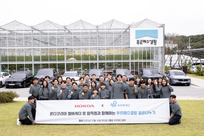 [서울=뉴스핌] 이찬우 기자 = 혼다코리아는 경기도 여주에 위치한 국내 최초 스마트팜 기반의 발달장애 청년 일터 '푸르메소셜팜'에서 혼다 앰버서더 및 임직원과 함께 일손 나누기 봉사활동을 진행했다고 15일 밝혔다.