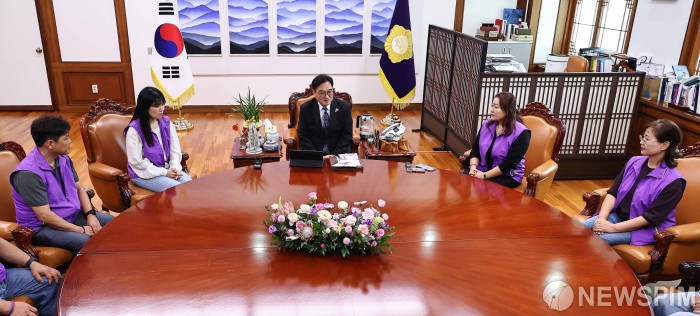 [서울=뉴스핌] 윤창빈 기자 = 우원식 국회의장이 15일 오후 서울 여의도 국회에서 10.29 이태원참사 유가족들과 면담을 하고 있다. 2025.10.15 pangbin@newspim.com