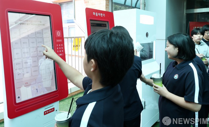 [파주=뉴스핌] 최지환 기자 = 한가람중학교 재학생들이 15일 오후 경기 파주시 한가람중학교에서 열린 '2025 경기도교육청 찾아가는 생명존중 캠페인'에서 AI 기반 마음상담 기기 '위로미'를 체험하고 있다. 2025.10.15 choipix16@newspim.com
