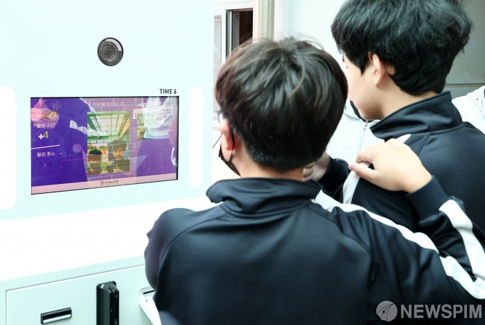 [파주=뉴스핌] 최지환 기자 = 한가람중학교 재학생들이 15일 오후 경기 파주시 한가람중학교에서 열린 '2025 경기도교육청 찾아가는 생명존중 캠페인'에서 포토부스에서 기념촬영을 하고 있다. 2025.10.15 choipix16@newspim.com
