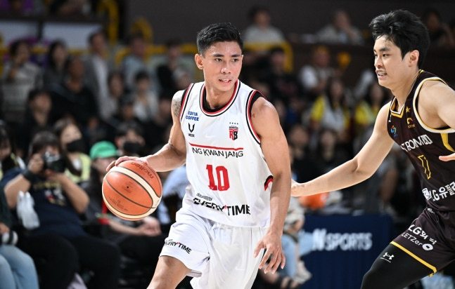 [서울=뉴스핌] 손지호 기자 = 정관장 렌즈 아반도(왼쪽)가 돌파를 하고 있다. [사진=KBL] 2025.10.15 thswlgh50@newspim.com |