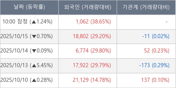 [표] 외국인ㆍ기관 순매매량 (단위 주)