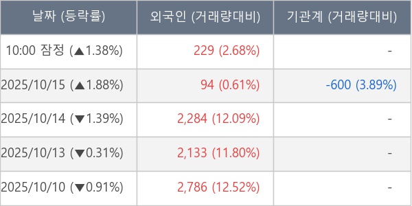 [표] 외국인ㆍ기관 순매매량 (단위 주)