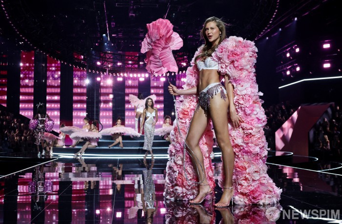 안젤리나 켄달이 15일 미국 뉴욕에서 열린 2025 빅토리아시크릿 패션쇼 런웨이를 걷고 있다. [사진=로이터 뉴스핌]