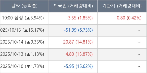 [표] 주요 기관별 순매매량 (단위 만주)