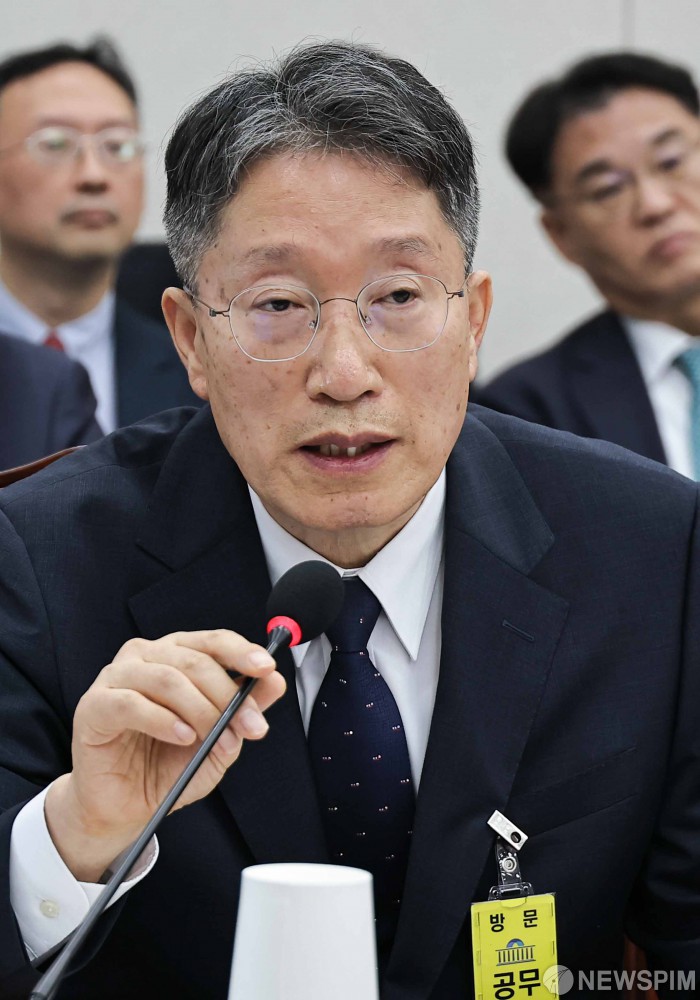 [서울=뉴스핌] 윤창빈 기자 = 김낙년 한국학중앙연구원장이 16일 오전 서울 여의도 국회에서 열린 교육위원회의 한국고전번역원 등에 대한 국정감사에서 의원 질문에 답변하고 있다. 2025.10.16 pangbin@newspim.com