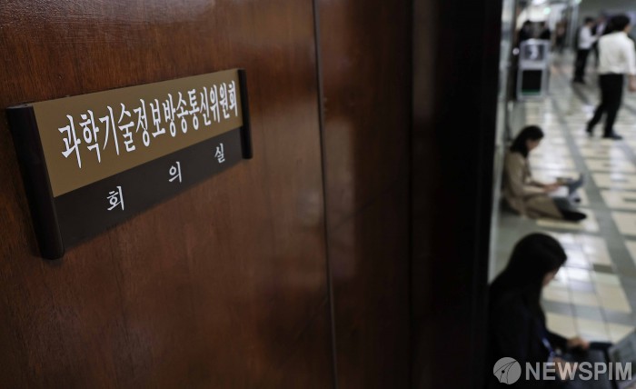 [서울=뉴스핌] 윤창빈 기자 = 16일 오후 서울 여의도 국회에서 열린 과학기술정보방송통신위원회 국정감사가 최민희 위원장이 취재진 퇴장을 선언해 비공개로 진행되고 있다. 2025.10.16 pangbin@newspim.com