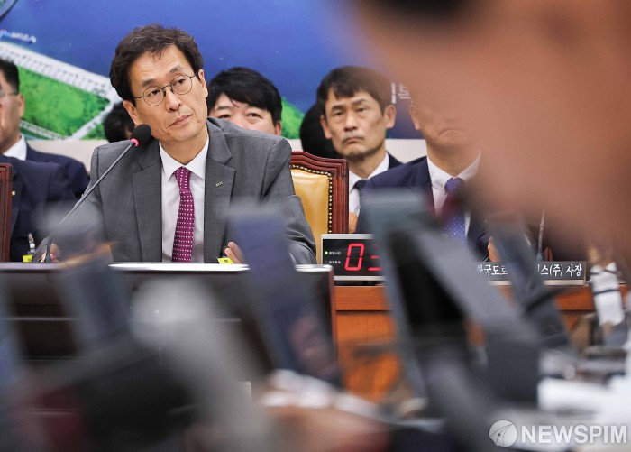 [서울=뉴스핌] 윤창빈 기자 = 함진규 한국도로공사 사장이 16일 오전 서울 여의도 국회에서 열린 국토교통위원회의 한국도로공사 등에 대한 국정감사에서 의원 질문을 듣고 있다. 2025.10.16 pangbin@newspim.com |