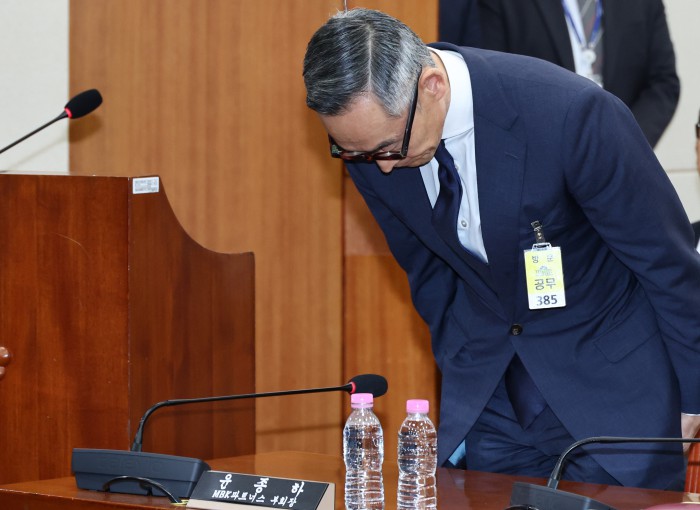 사진은 지난달 24일 서울 여의도 국회 과학기술정보방송통신위원회에서 열린 통신·금융 대규모 해킹사고에 대한 청문회에서 김영섭 KT 대표가 고개 숙여 인사하는 모습. [사진=뉴스핌DB]