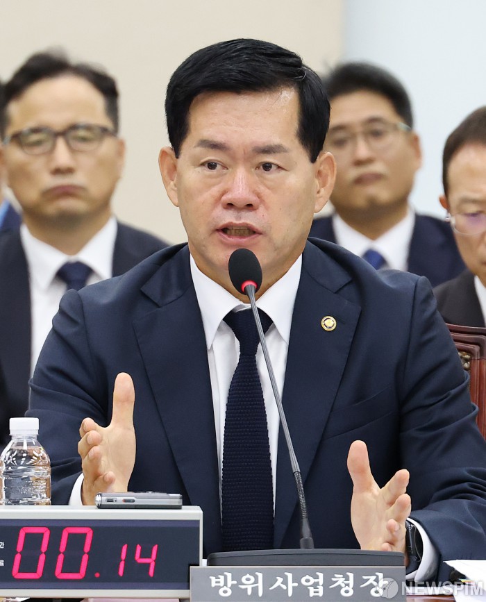 [서울=뉴스핌] 정일구 기자 = 석종건 방위사업청장이 17일 오전 서울 여의도 국회 국방위원회에서 열린 방위사업청 등에 대한 국정감사에서 의원 질의에 답하고 있다. 2025.10.17 mironj19@newspim.com
