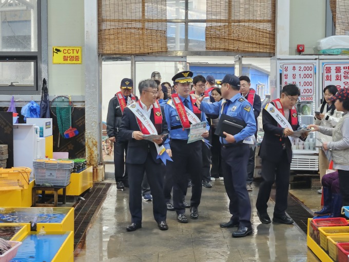 이 캠페인은 속초해경, 고성군, 고성군수산협동조합, 속초어선안전조업국 등 4개 기관에서 약 30여 명이 참여해 고성군 수협 위판장과 거진항 활어난전에서 진행됐다.
