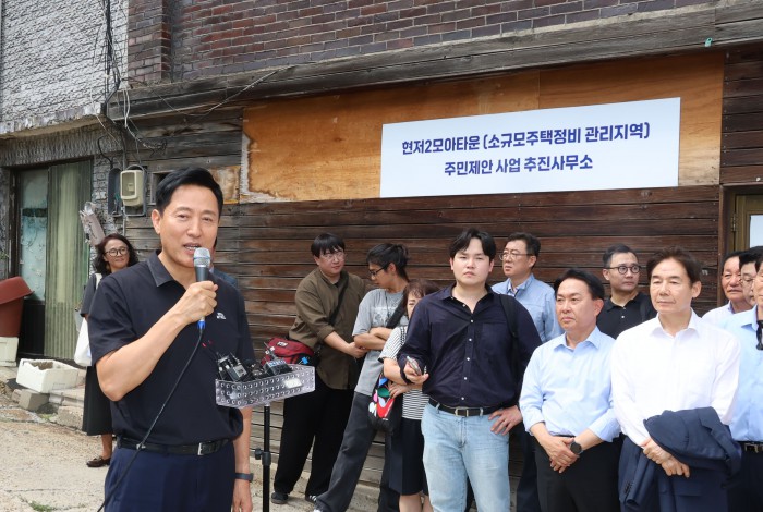 [서울=뉴스핌] 양윤모 기자 = 서울시 전역의 투기과열지구 지정으로 모아타운·모아주택사업이 상대적으로 더 큰 충격을 받을 전망이다. 사진은 오세훈 서울시장이 서대문구 현저동 모아타운 예정지를 찾아 모아주택 활성화 방안 발표하는 모습 |