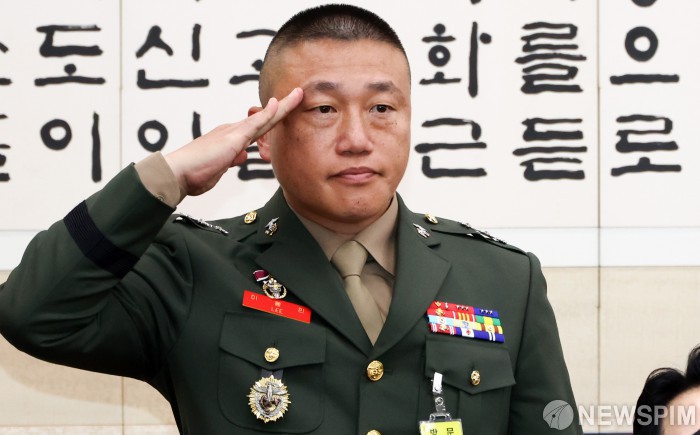 [서울=뉴스핌] 최지환 기자 = 이용민 전 해병대 포7대대장이 17일 오후 서울 여의도 국회 법제사법위원회에서 열린 군사법원 등에 대한 국정감사에 증인으로 출석해 있다. 2025.10.17 choipix16@newspim.com