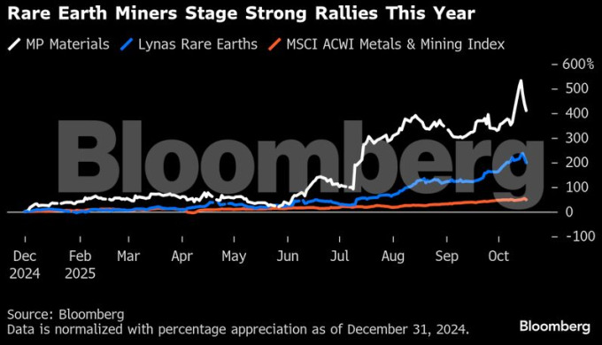 문제는 단지 더 많은 금속이 규제를 받게 된다는 것만이 아니다. 제한 대상 제품의 수도 급증하고 있다. 이로 인해 희토류 광산업체와 가공업체 주식에 대한 매수세가 몰렸으며, 이들 중 다수는 올해 3자릿수 상승률을 기록했다.