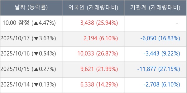 [표] 외국인ㆍ기관 순매매량 (단위 주)