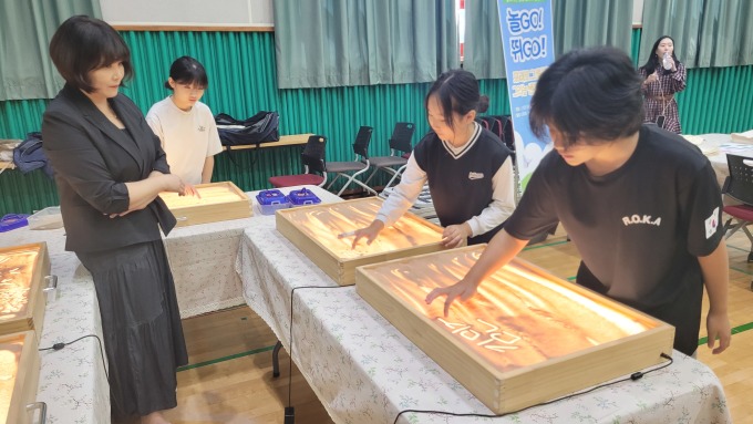 군은 지난 15일과 17일 칠량초, 신전초에서 첫 행사를 진행했으며 학생들의 일상 속 놀이 기회를 확대하기 위해 오는 12월까지 칠량초, 신전초, 마량초, 병영초, 대구중학교 등 5개 학교에서 순회 개최한다. 이번 프로그램은 진로체험, 전통놀이, 목공예, VR 체험, 샌드아트 등 학교별 맞춤형으로 구성됐다.