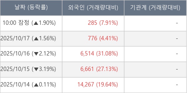 [표] 외국인ㆍ기관 순매매량 (단위 주)