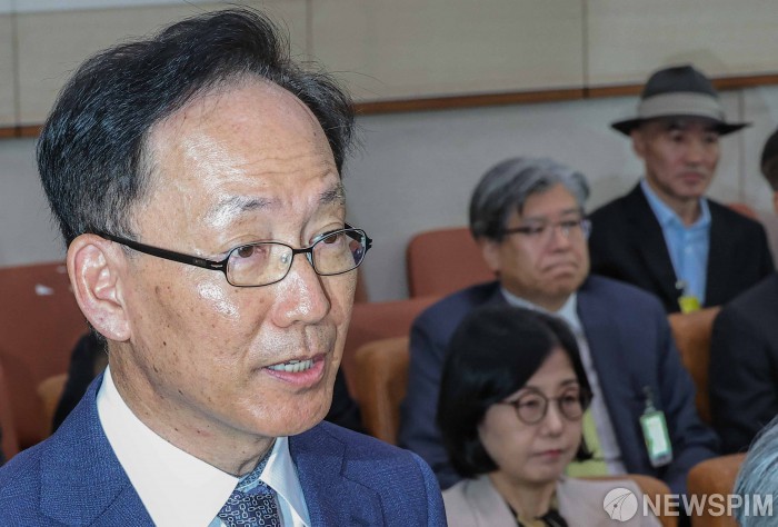 [서울=뉴스핌] 윤창빈 기자 = 김대웅 서울고등법원장이 20일 오전 서울 여의도 국회에서 법제사법위원회의 서울고등법원 등에 대한 국정감사에서 업무보고를 하고 있다. 2025.10.20 pangbin@newspim.com