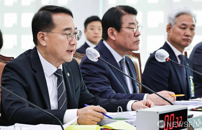 [서울=뉴스핌] 윤창빈 기자 = 김인호 산림청장이 20일 국회에서 열린 농림축산식품해양수산위원회의 산림청 등에 대한 국정감사에서 위원 질의에 답하고 있다. 2025.10.20 pangbin@newspim.com