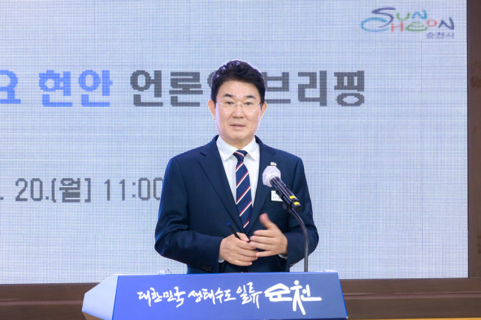 노관규 순천시장이 20일 시청 소회의실에서 열린 주요 현안 언론인 브리핑에서 발언하고 있다 [사진=순천시] 2025.10.20 chadol999@newspim.com |