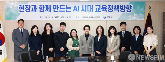 [서울=뉴스핌] 최은옥 교육부 차관이 20일 서울 여의도 한국교육시설안전원에서 열린 인공지능(AI) 시대 교육정책 간담회에서 참석자들과 기념촬영을 하고 있다. [사진=교육부] 2025.10.20 photo@newspim.com