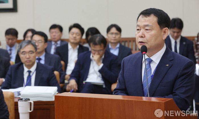 [서울=뉴스핌] 이형석 기자 = 윤석대 한국수자원공사 사장이 17일 오후 서울 여의도 국회에서 열린 환경노동위원회의 한국수자원공사, 한국환경공단, 국립공원공단, 수도권매립지관리공사, 한국환경산업기술원 등 국정감사에서 의원질의에 답하고 있다. 2024.10.17 leehs@newspim.com |