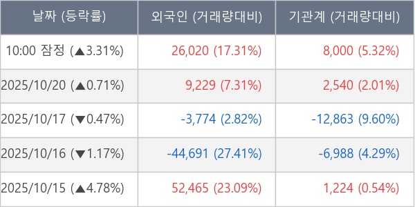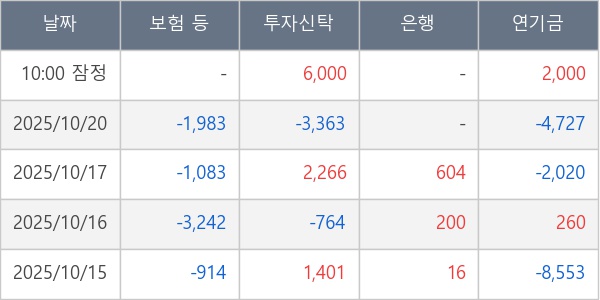 [표] 주요 기관별 순매매량 (단위 주)