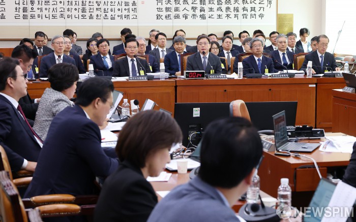 [서울=뉴스핌] 정일구 기자 = 설범석 광주고등법원장(왼쪽부터), 진성철 대구고등법원장, 이원범 대전고등법원장, 박종훈 부산고등법원장, 한규현 특허법원장이 21일 오전 서울 여의도 국회 법제사법위원회에서 열린 대전고등법원 등에 대한 국정감사에 출석하고 있다. 2025.10.21 mironj19@newspim.com