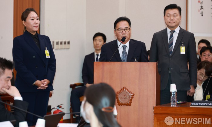 [서울=뉴스핌] 김학선 기자 = 21일 서울 여의도 국회 법제사법위원회에서 열린 국정감사에서 김태열 전 미래한국연구소장이 발언하고 있다. 2025.10.21 yooksa@newspim.com