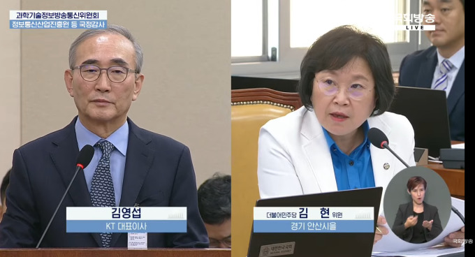 이에 김 의원은 "KT는 사태 수습 후 사퇴하겠다는 입장을 반복하면서도 조사 결과를 기다리겠다는 말만 되풀이하고 있다"며 "국가기관 통신사로서 선제적 대응이 필요하다"고 질타했다.