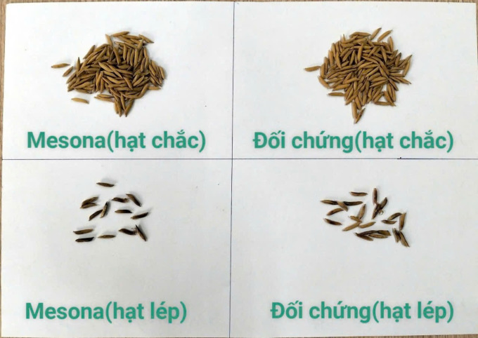 파종 후 생육기 동안 총 4회에 걸쳐 500㎡당 500ml씩 처리한 결과, 메소나를 처리한 벼(290kg)는 전통 방식으로 재배한 대조구(245kg)보다 약 18.4% 높은 수확량을 보였다. 충실한 쌀 비율은 70.6%, 1000립 무게는 45.64g으로 대조구(각 66.2%, 42.25g)보다 품질 지표도 높았다.