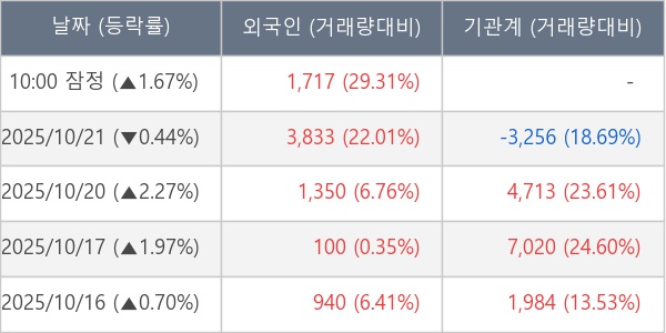 [표] 외국인ㆍ기관 순매매량 (단위 주)