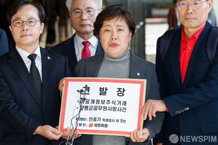 [서울=뉴스핌] 류기찬 기자 = 조배숙 국민의힘 사법정의수호 및 독재저지 특별위원회 위원장이 22일 오전 서울 서초구 서울중앙지방검찰청에 민중기 특별검사에 대한 자본시장법위반, 직권남용 등의 혐의로 고발장을 접수하기 전 입장을 밝히고 있다. 2025.10.22 ryuchan0925@newspim.com