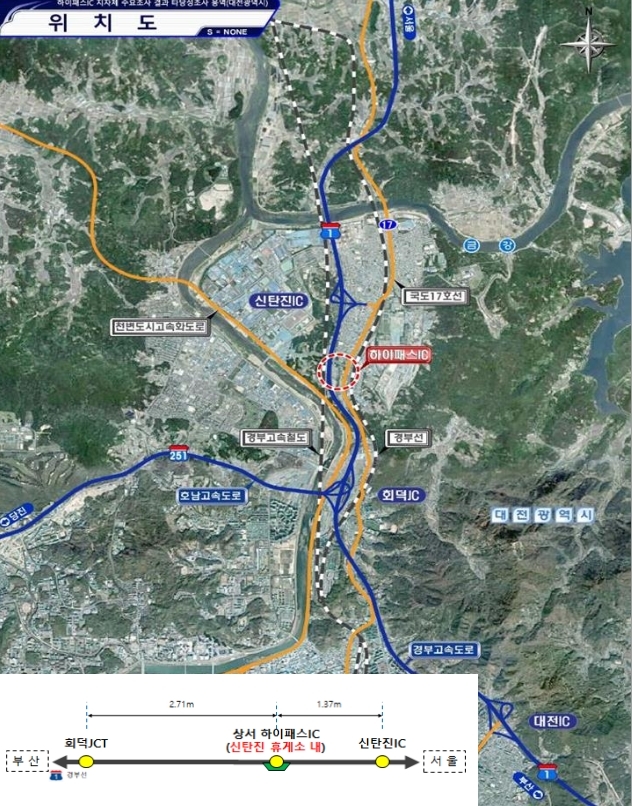상서 하이패스 나들목은 경부고속도로 280.5km 서울방향에 있는 신탄진 휴게소에 직접 연결되는 하이패스 전용 나들목으로 총62억원(도공 50% 부담)의 사업비가 투입됐다. 도로공사와 대전시는 2021년 9월 상서 하이패스 나들목 설치를 위한 실시협약을 체결해 사업을 진행해 왔다.
