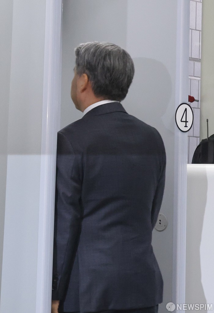 [서울=뉴스핌] 양윤모 기자 = 채상병 순직 및 수사 외압·은폐 의혹의 핵심 피의자인 이종섭 전 국방부 장관이 23일 오전 구속 전 피의자 심문(영장실질심사)을 위해 서울 서초구 서울중앙지법에 출석하고 있다. 서울중앙지법 정재욱 영장전담 부장판사는 10시 10분부터 이 전 장관의 구속 전 피의자 심문(영장실질심사)을 열고 구속 필요성을 심리했다. 이명현 순직해병 특별검사팀은 지난 20일 이 전 장관에 대해 직권남용 권리행사 방해 등 6개 혐의로 구속영장을 청구했다. 2025.10.23 yym58@newspim.com