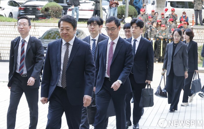 [서울=뉴스핌] 양윤모 기자 = 채상병 순직 및 수사 외압·은폐 의혹을 수사중인 이명현 순직해병 특별검사팀이 이종섭 전 국방부 장관의 23일 오전 구속 전 피의자 심문(사)을 위해 서울 서초구 서울중앙지법으로 이동하고 있다. 서울중앙지법 정재욱 영장전담 부장판사는 10시 10분부터 이 전 장관의 구속 전 피의자 심문(영장실질심사)을 열고 구속 필요성을 심리했다. 이명현 순직해병 특별검사팀은 지난 20일 이 전 장관에 대해 직권남용 권리행사 방해 등 6개 혐의로 구속영장을 청구했다. 2025.10.23 yym58@newspim.com