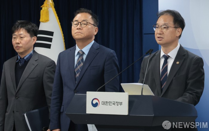 [서울=뉴스핌] 이길동 기자 =김영수 국무조정실 국무1차장이 23일 정부서울청사에서 이태원 참사 합동감사 결과 브리핑을 하고 있다. 2025.10.23 gdlee@newspim.com