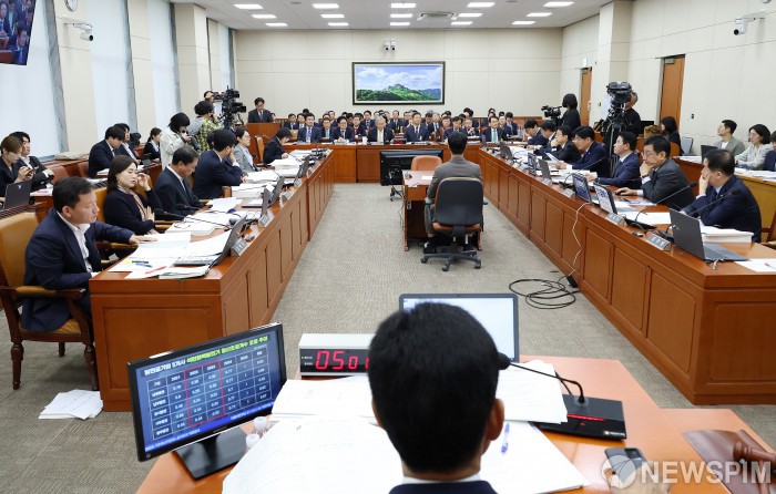 [서울=뉴스핌] 정일구 기자 = 23일 서울 여의도 기후에너지환경노동위원회에서 국정감사가 열리고 있다. 2025.10.23 mironj19@newspim.com