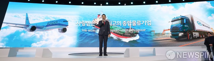 [서울=뉴스핌] 최지환 기자 = 조원태 한진그룹 회장이 23일 오후 서울 용산구 그랜드하얏트 서울에서 열린 한진그룹 80주년 기념식에서 발언하고 있다. 2025.10.23 choipix16@newspim.com