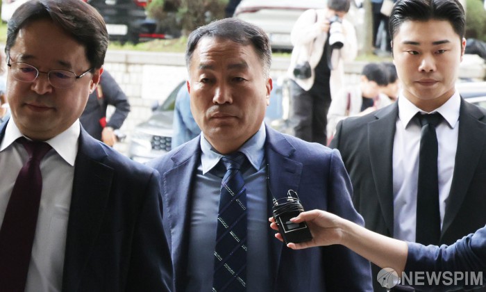 [서울=뉴스핌] 양윤모 기자 =채상병 순직 및 수사 외압·은폐 의혹의 피의자인 김계환 전 해병대 사령관이 23일 오후 구속 전 피의자 심문(영장실질심사)을 위해 서울 서초구 서울중앙지법에 출석하고 있다. 2025.10.23 yym58@newspim.com
