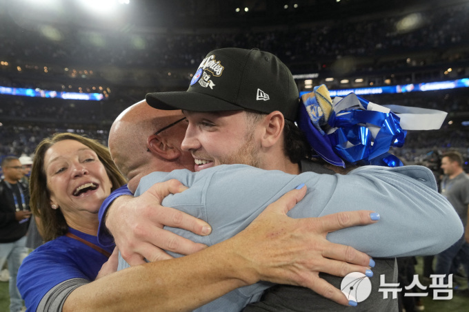 | [서울=뉴스핌] 장환수 스포츠전문기자= 트레이 예새비지가 22일 시애틀과 ALCS 7차전 승리로 토론토의 월드시리즈 진출이 확정된 뒤 부모와 감격의 포옹을 하고 있다. 2025.10.24 zangpabo@newspim.com |