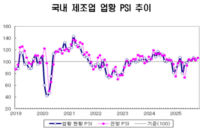 | 국내 제조업 업황 PSI 추이 [자료=산업연구원] 2025.10.24 rang@newspim.com |