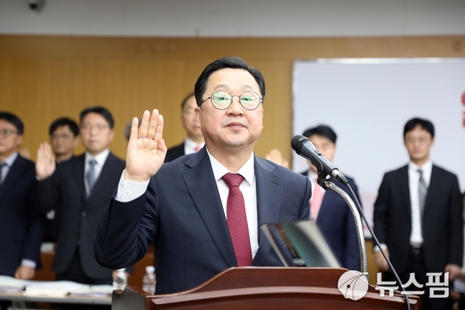 [대전=뉴스핌] 오종원 기자 = 이장우 대전시장이 24일 오전 대전시청에서 열린 국회 행정안전위원회 대전시 국정감사에서 선서를 하고 있다. jongwon3454@newspim.com