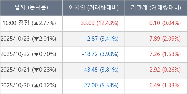 ※ 사모펀드 등 일부 기관의 순매매량은 표시되지 않음
